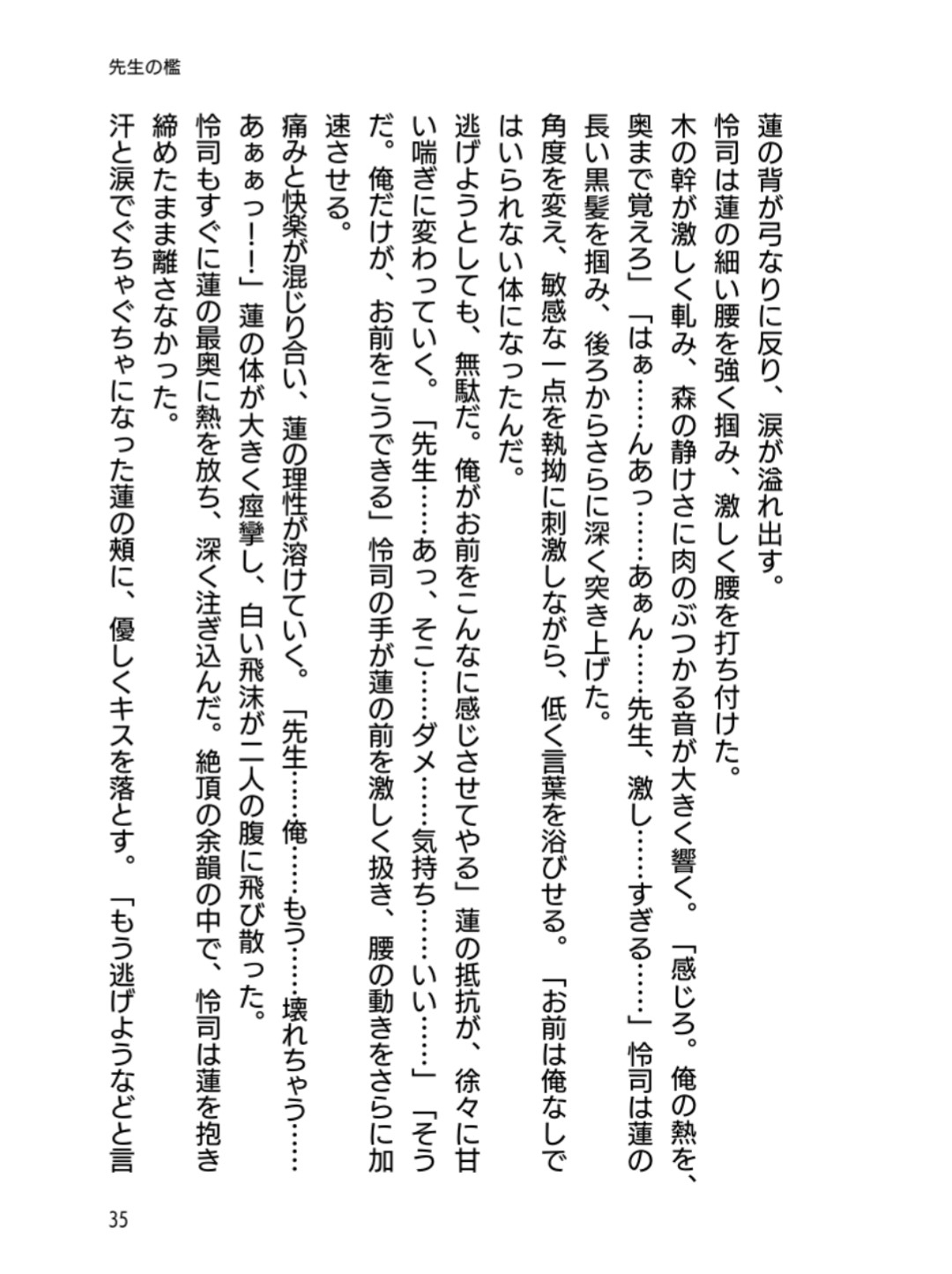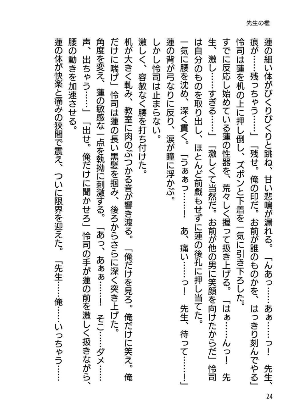 「補習」という檻の中で、怜司は蓮をゆっくりと、しかし貪るように調教していく。 「お前は俺のものだ」 学校中を舞台にした秘密の密会、激しい嫉妬、