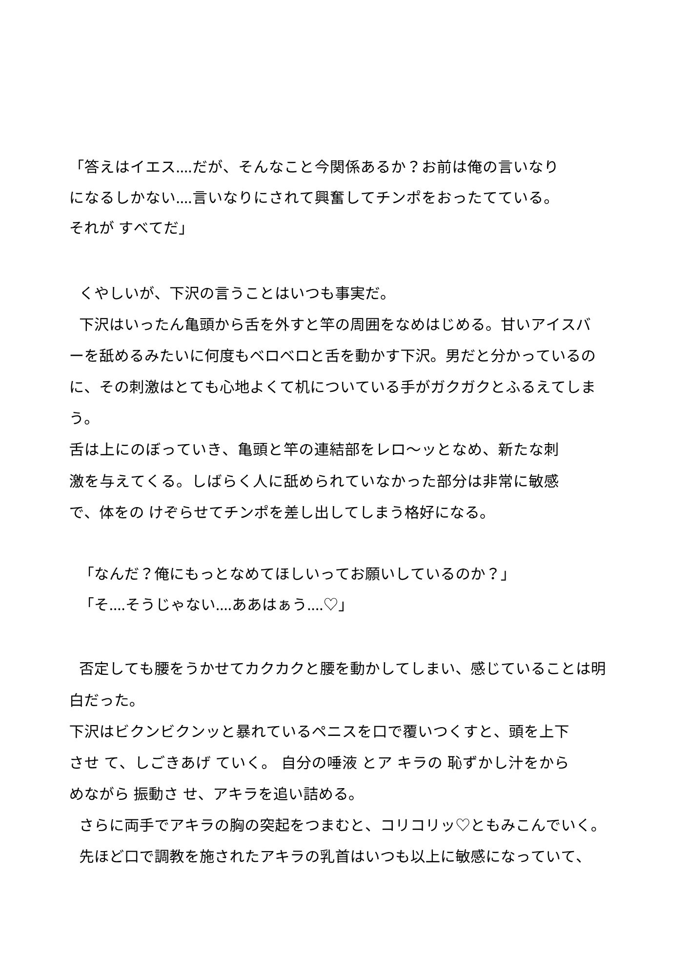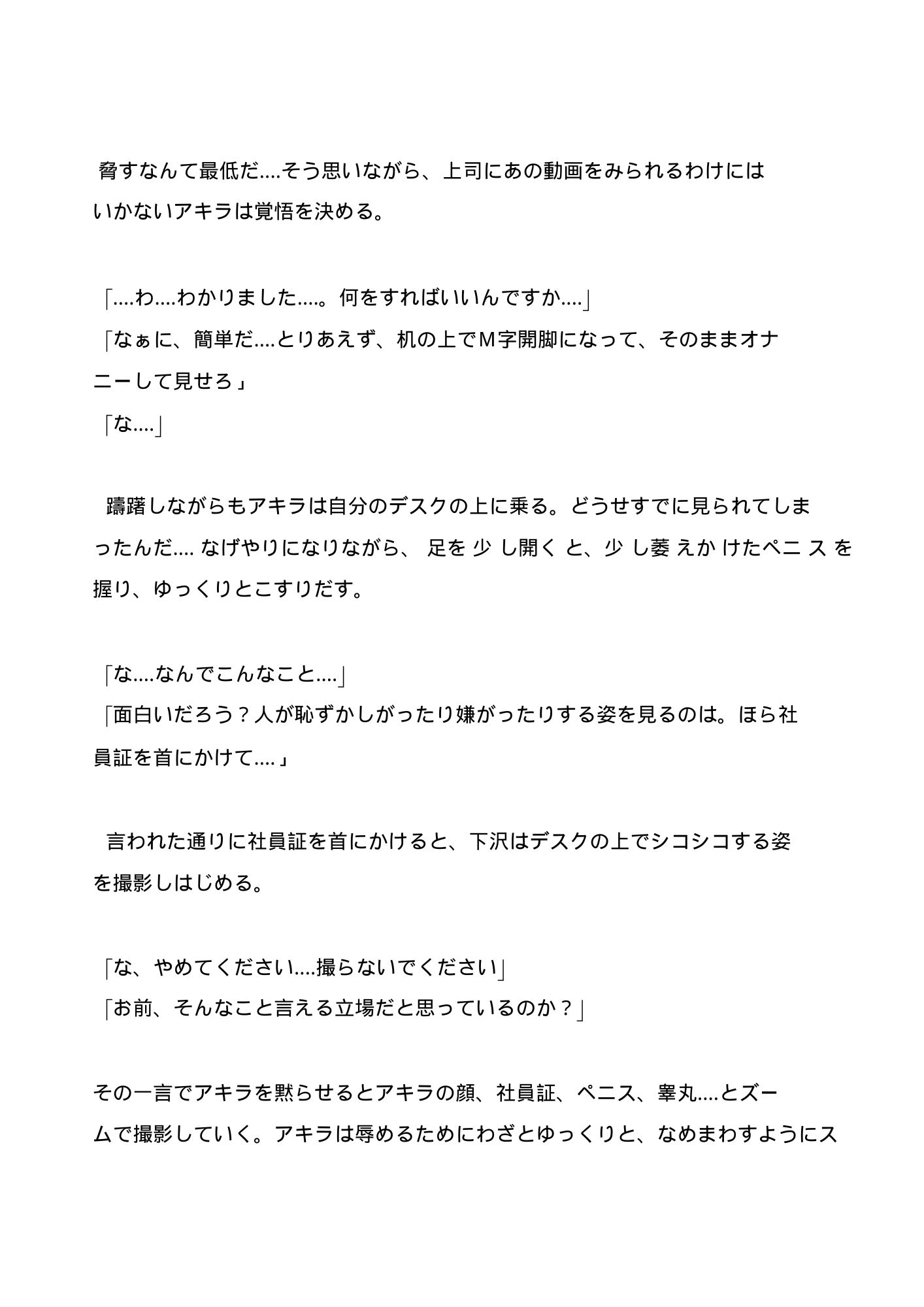 営業成績NO.1のエリートリーマンが、巡回中の警備員に会社でのオナニーを撮影され、言いなりにされてしまうお話です。