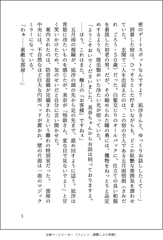 待ち合わせに現れた愛らしい青年に誘われ、連れてこられたのは妖艶な会員制の隠れ家宿。 そこで出された甘いフルーツ酒を飲んだ瞬間、凪沙の体は異常な熱を帯び、指一本動かせなくなってしまう。