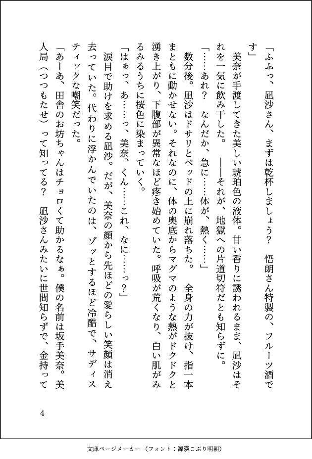 睡眠薬/媚薬: 異常発情、感度数十倍