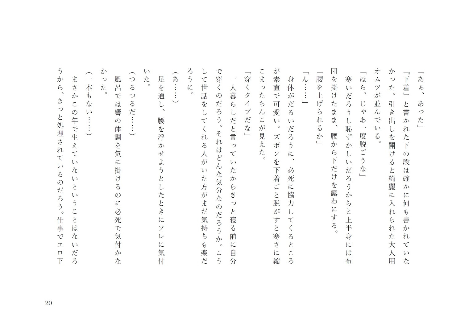 夜尿症なので寝るときだけオムツ着用。下着→オムツを攻めにしてほしくて、下着のまま攻めが来るのを待っちゃう系。
