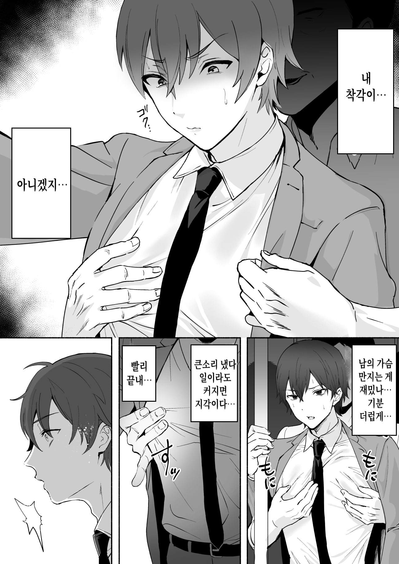 後半はホテルでの集団乳首責め&前立腺開発・挿入メインです。