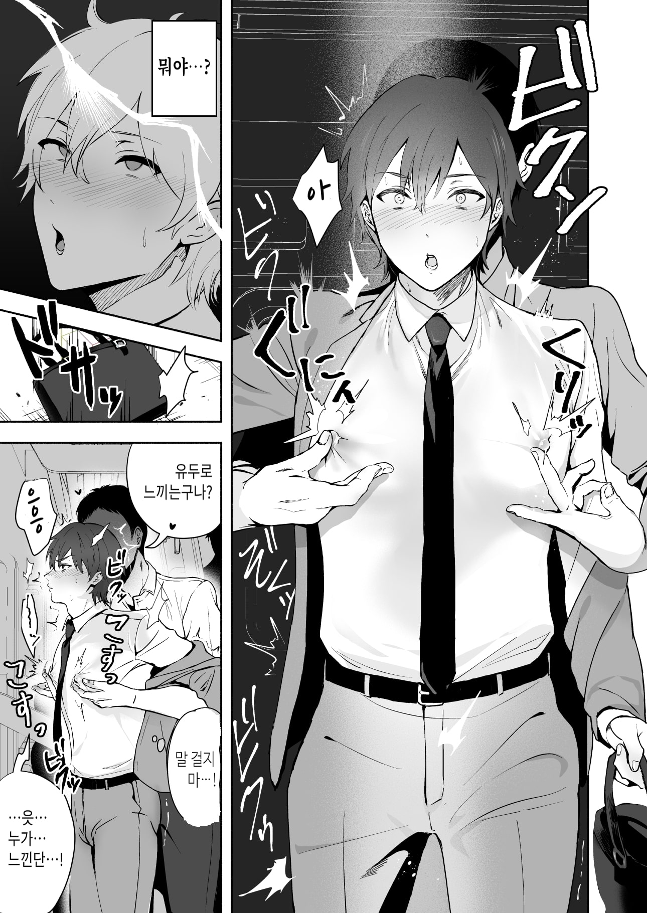 前半は電車内での乳首責め(着衣)メイン、