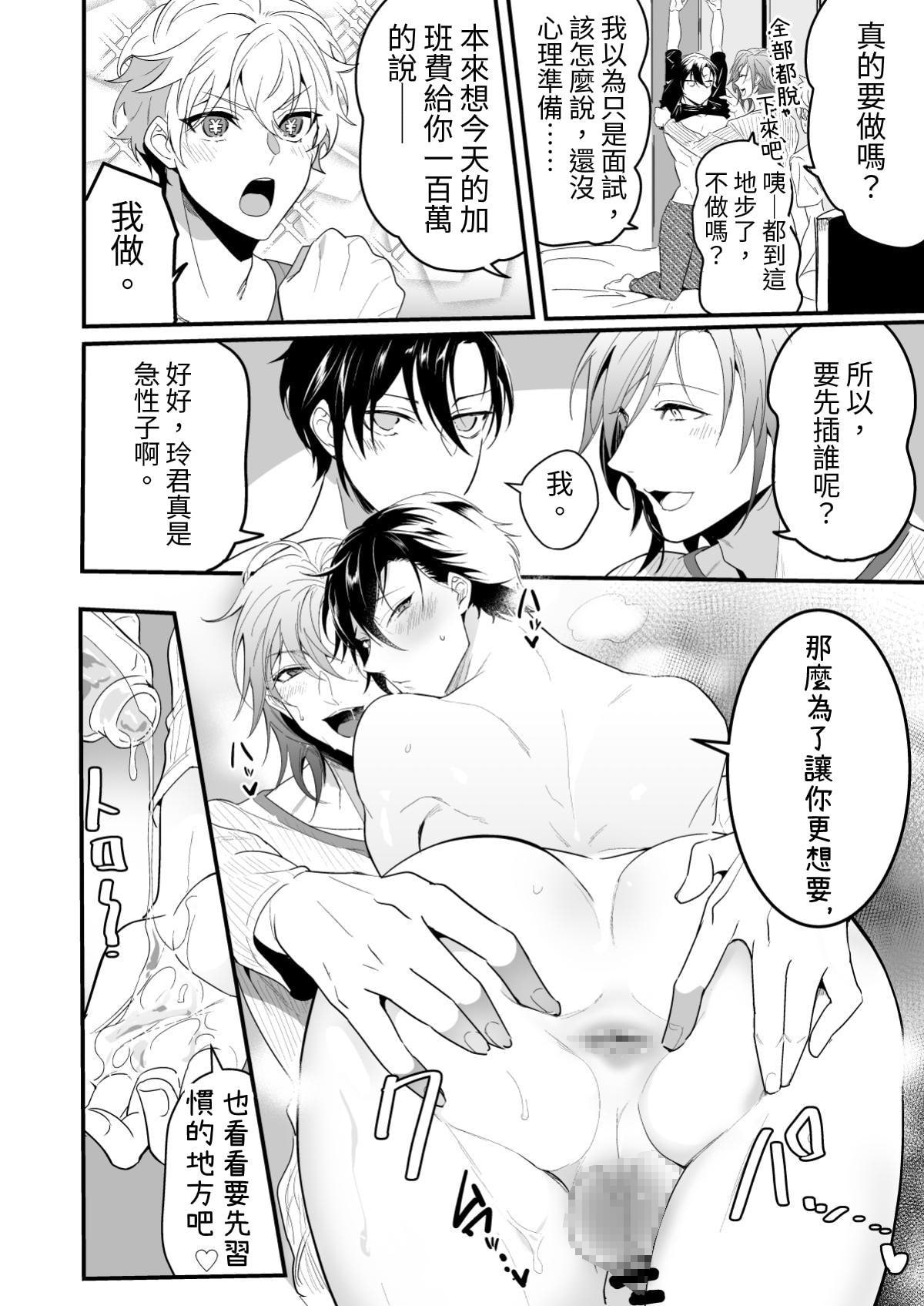 巨根童顔くんがお金欲しさに怪しいバイトに申し込んだところ、えっちなお兄さん二人に絡まれイチャラブする話です。