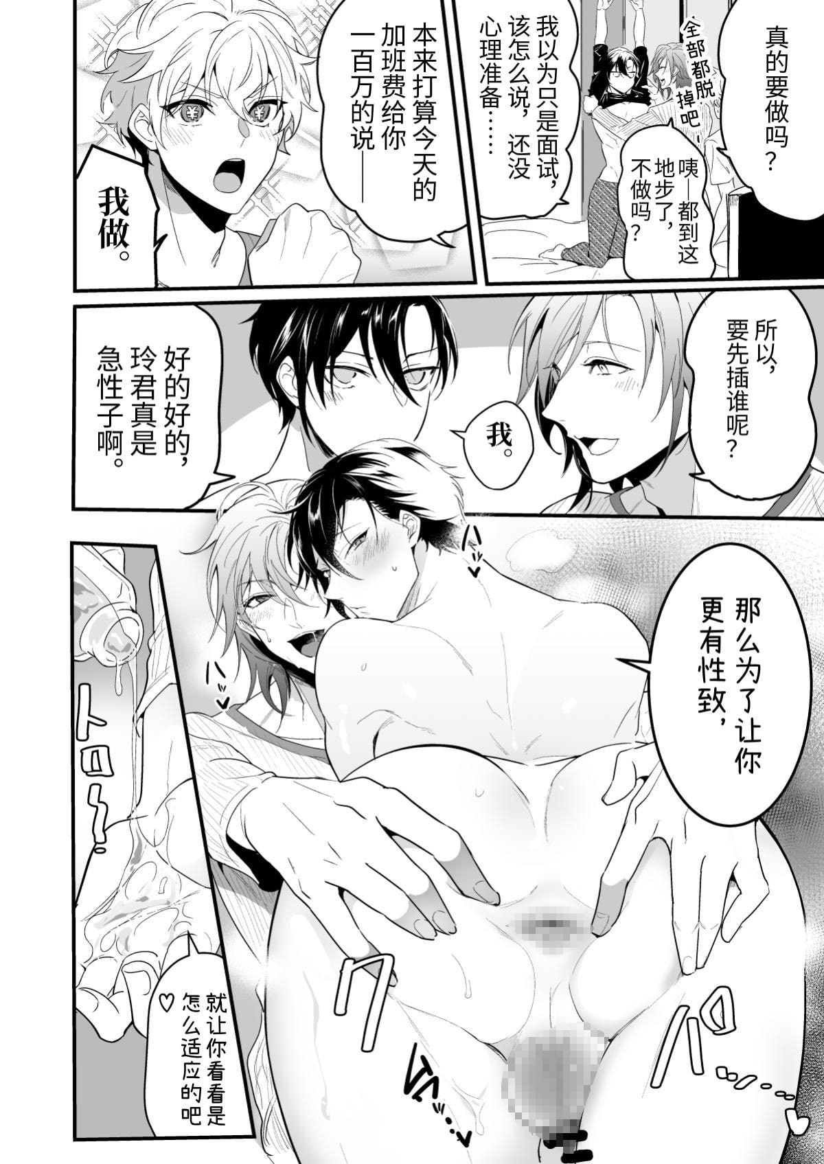 巨根童顔くんがお金欲しさに怪しいバイトに申し込んだところ、えっちなお兄さん二人に絡まれイチャラブする話です。