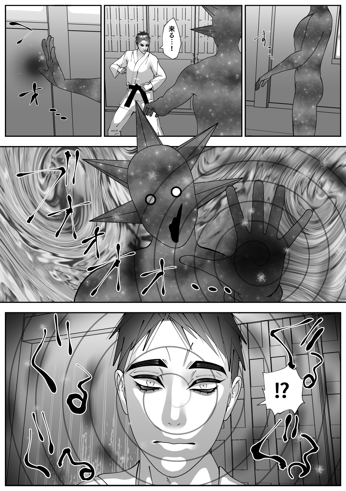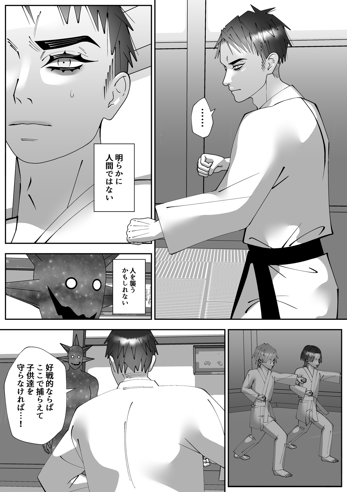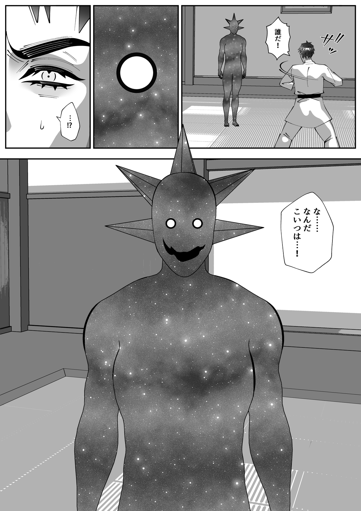 道場の真ん中でいきなり宇宙人と対面することになるも、主人公は持ち前の正義感と身体能力で宇宙人に攻撃する意志を固める。