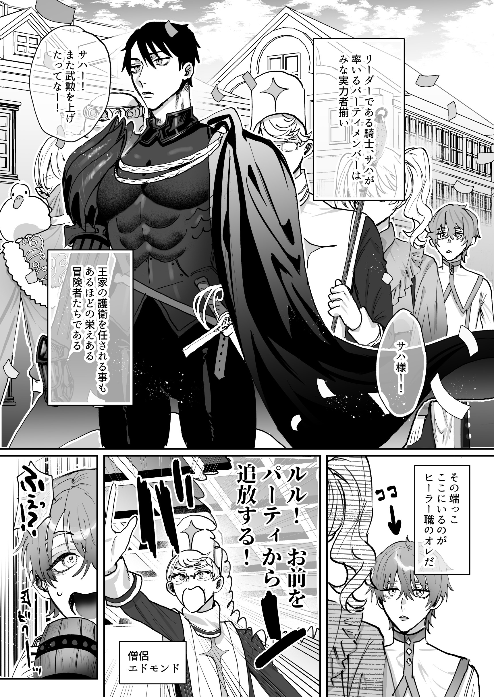 ある日突然、冒険者パーティから追放されてしまったヒーラー職のルル(主人公/受け)。