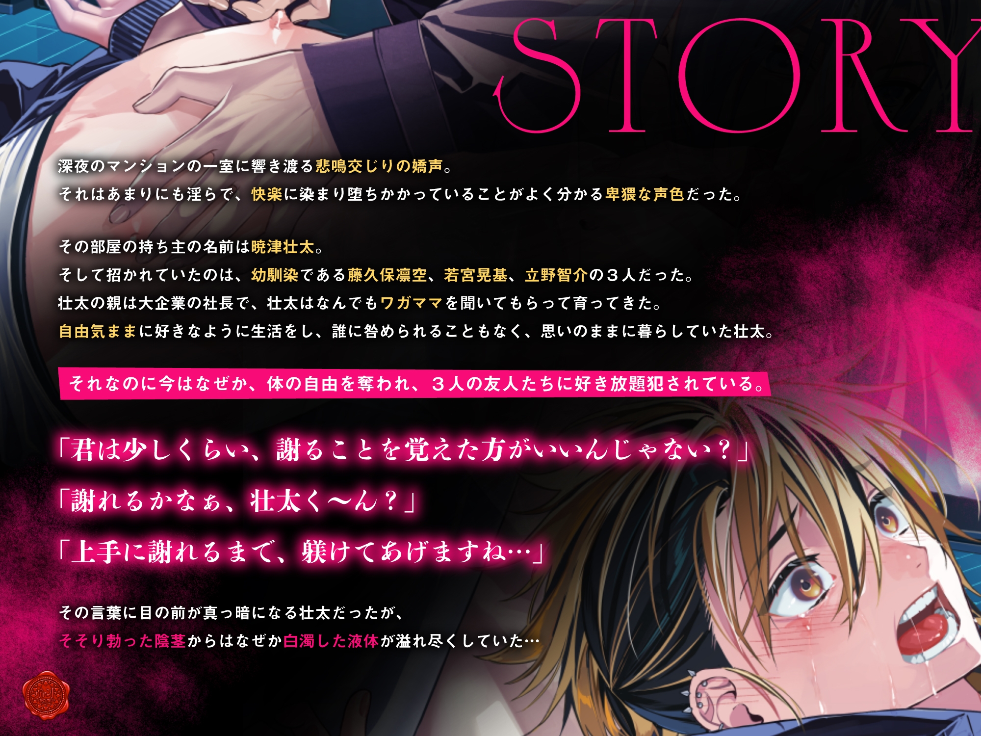 ![ごめんなさいが言えるようになるまで~見下していた年下幼馴染3人からの逆襲調教分からせレ○プ~ [ヴァント-wand-] ごめんなさいが言えるようになるまで~見下していた年下幼馴染3人からの逆襲調教分からせレ○プ~ [ヴァント-wand-]](http://img.dlsite.jp/modpub/images2/parts_ana/RJ01593000/RJ01592938/3e661611746f5dcab8c9f6fd8df9f4f8.jpg)