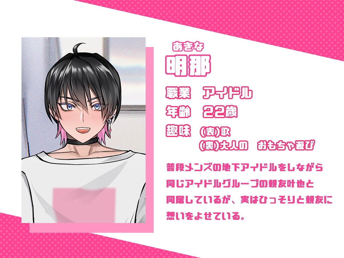 さっそく密かに想いをよせていたアイドルチームメンバーで同棲中の叶也に無理矢理押し付け、自室に戻りオナニーに励んでいると何も入れてないはずのアナルの方に知らない感覚が…!