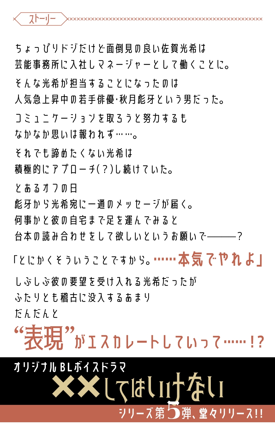 ![ただの稽古のはずなのに売れっ子俳優に襲われました ~泣いてはいけないシチュエーション~ [ハロープラネット] ただの稽古のはずなのに売れっ子俳優に襲われました ~泣いてはいけないシチュエーション~ [ハロープラネット]](http://img.dlsite.jp/modpub/images2/parts/RJ01515000/RJ01514408/6fe1fc00b5d2432258c1d7e61e8f8a16.jpg)