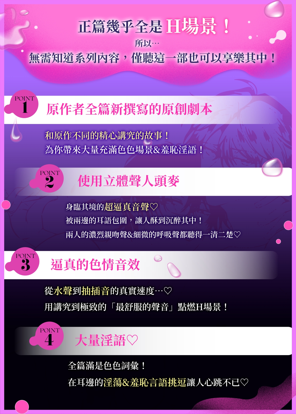 劇本全部由原作者全新撰寫。主H場景的原創故事。