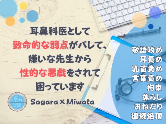 うるさいので邪険にしていた同僚に自分の性感帯がバレてしまい、集中的に責められ言いなりにされちゃう耳鼻科医の話。