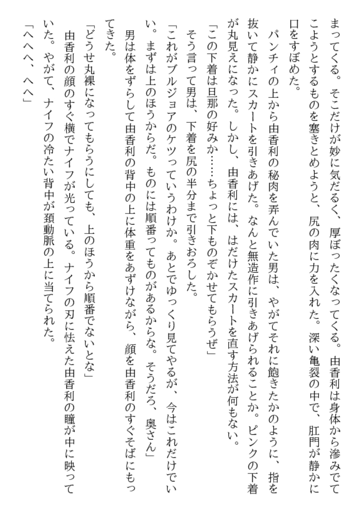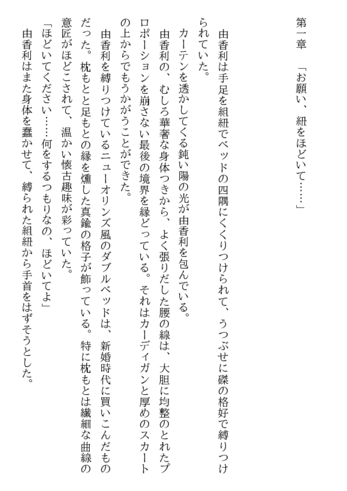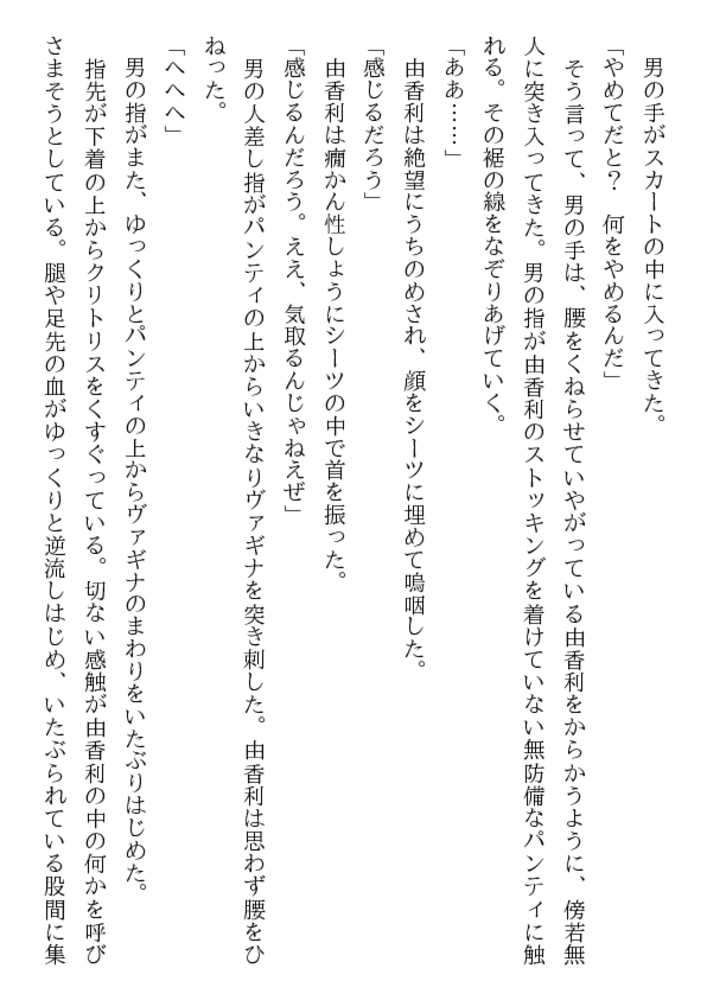 一瞬の隙を衝いて押し入った男は、若妻を羽交い締めにして下着まで毟った! 大の字にベッドに縛られ、剛直が肉の狭間へ……悲嘆に暮れる若妻のもとを訪れた義妹は、横たわる裸体を見て敵意をむき出しにする! 幸せな若妻を襲った悲劇は、レ○プからはじまった。