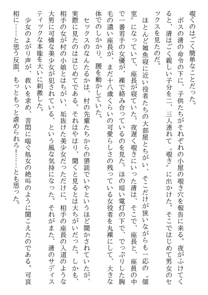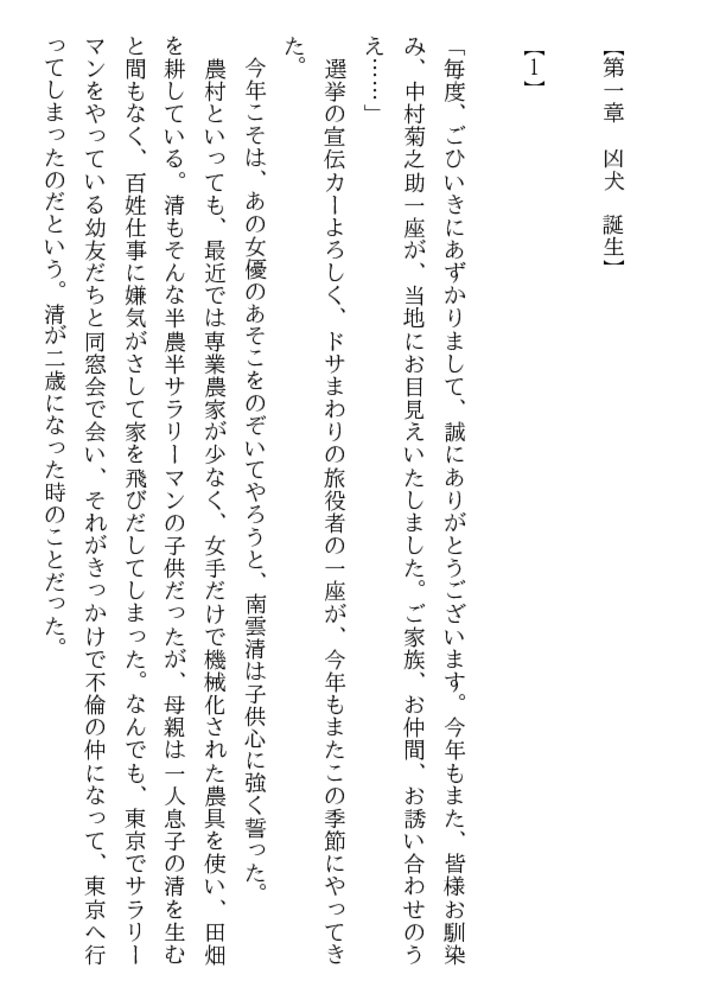 女子高生、女教師、新妻、令嬢、看護婦、継母。凶犬・清が凌○で奪った美女は数限りない。日夜、襲来するレ○プへの衝動、スリルへの渇望。レ○プには男にとって全ての享楽が含まれている。レ○プ小説の天才・伝説の蘭光生が精魂を込めて綴った長編「凶犬」第一弾!