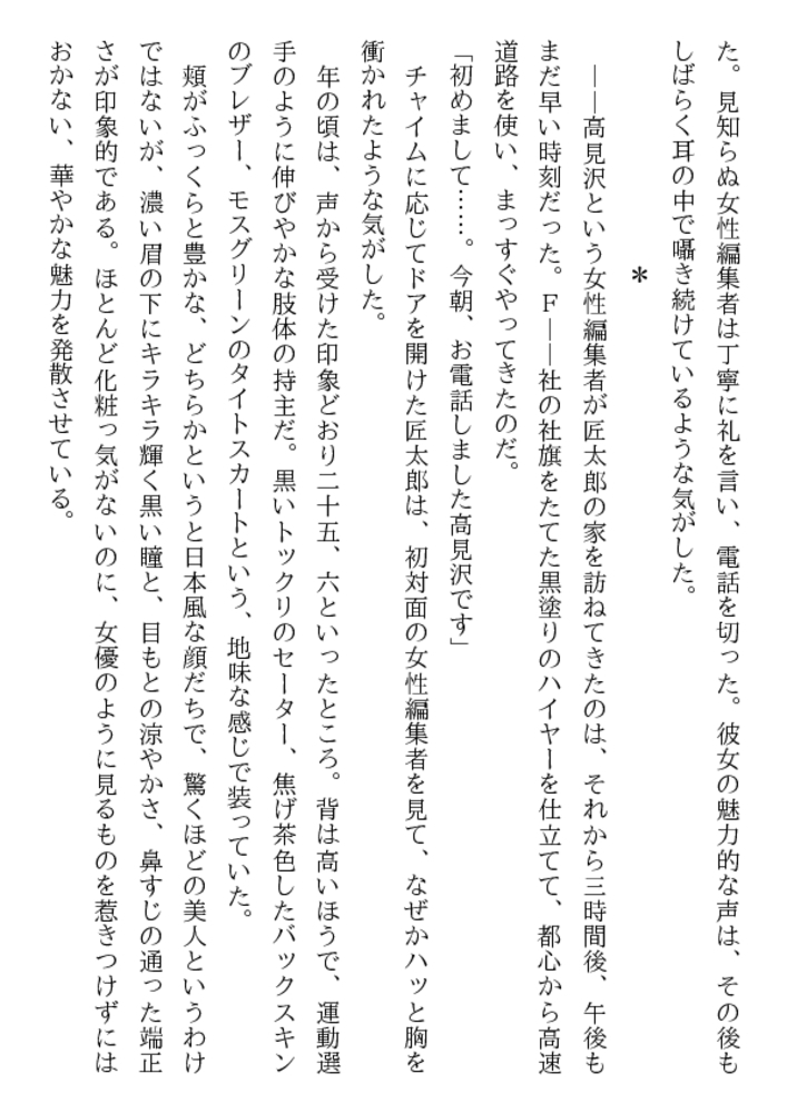 妖しい下着は包まれた魔性の肢体。 そこはかとなく漂う魔性の香り。 27歳の美身だけが持つ魔性に誘われて、 男は大都会の淫闇に消えていく…… 素人ストリップ、美少女クラブ、美肉市場。 奇妙な体験の末に待つものは、美雪の蜜壺!