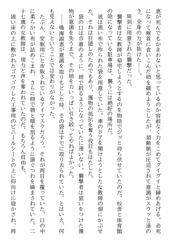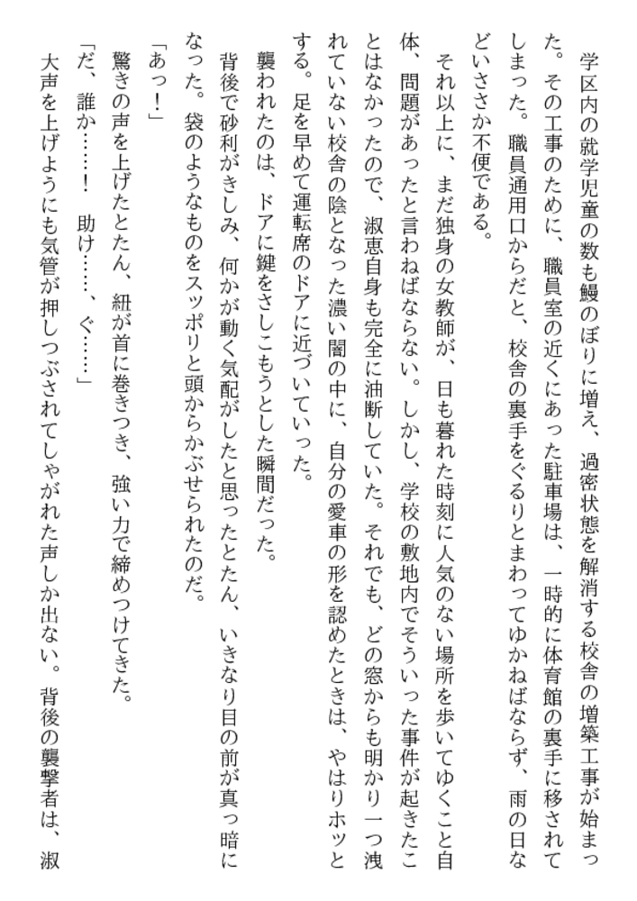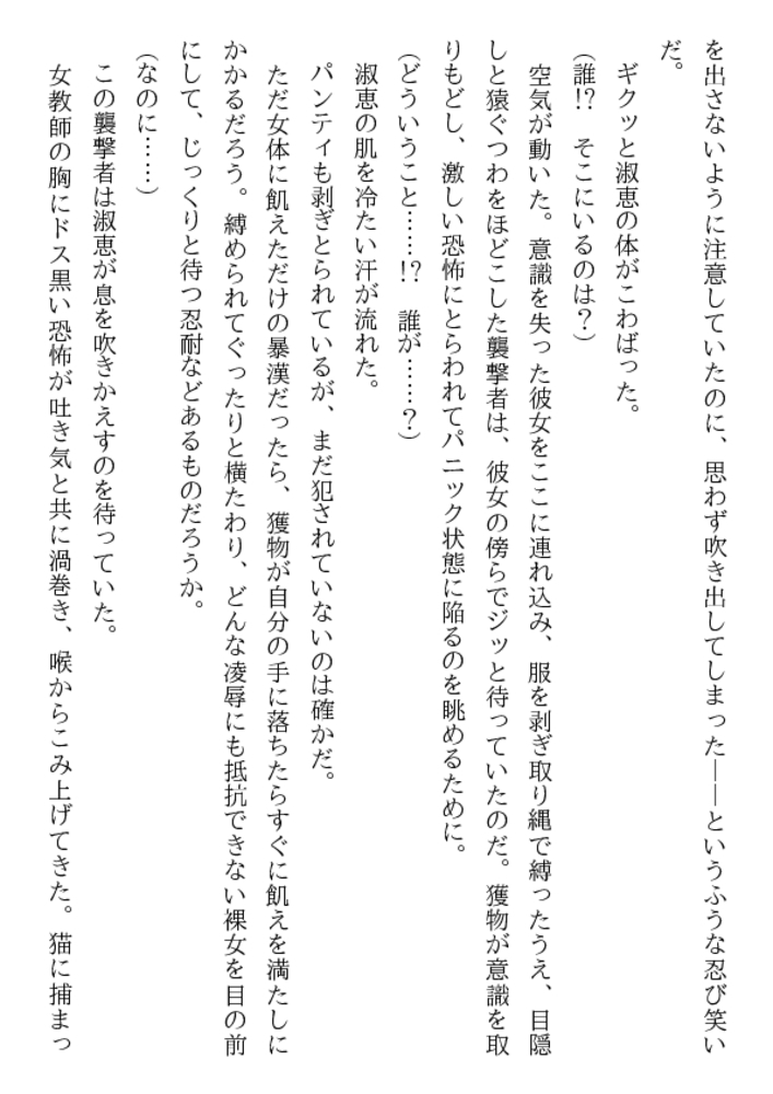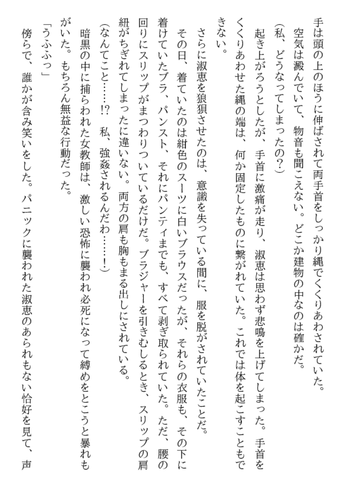 教室でオナニーなんて、できるはずがない。 「みんな、後ろを向いて……目を閉じて……」 悲痛な想いで女教師が叫び、着衣を脱ぐ…… やがて、生徒にとっても女教師にとっても、 甘美な、露出授業がはじまった。