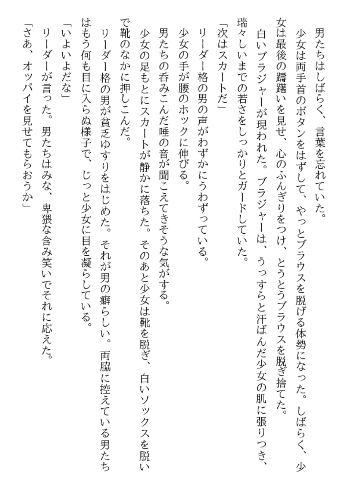 秘孔を貫かれていくたびに、朱みを帯びる柔肌。犯されていることを忘れたかの如く、グイグイッと巻きこみ絞りあげる肉襞……。あまりの名器に、○す男は我れを忘れていた。一方の涼子は、身体中に復讐心を滾らせていた。男たちは、28歳の女医を犯し、溺れていく……。
