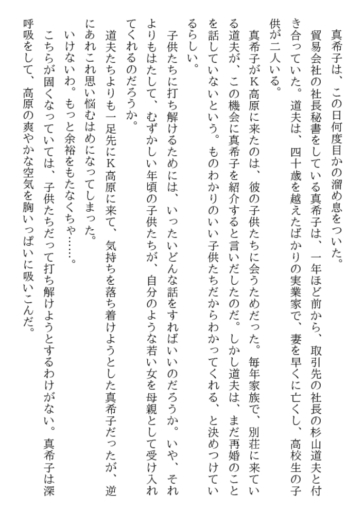 僕に犯されて悶え狂った女が継母になる!?……数奇な運命の糸に導かれて再会した真希子と浩一。あんなに淫らな女が継母だなんて許せない!!……だが、凌○で味わった真希子の身体は少年の邪欲を煽る。だったら徹底的に貪ってやる。苛め抜いてやる!!……父の目を盗んで少年は、若き継母を堕とす儀式を開始した。