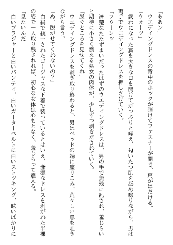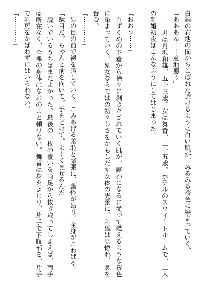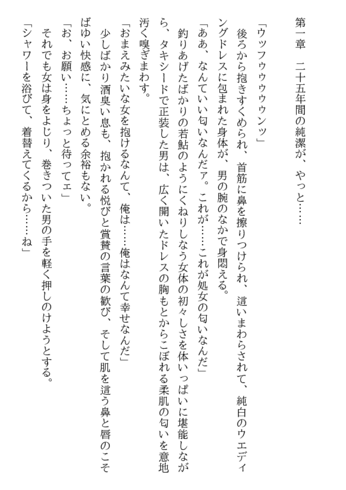 初夜に新郎が脳溢血! 舞香は処女のまま義母に! こんな悲劇は他にない。でも舞香は25歳の純潔を、 夫が全快した時のために守る決意をするのだが…… 昼夜関係なく熟れた美肉に湧きあがる激しい牝欲。 まして家には獣欲を滾らせた息子がいる。 ムッチムッチの若肉、性の匂いが、 二人を変態倒錯世界へ誘うのに時間はかからなかった。