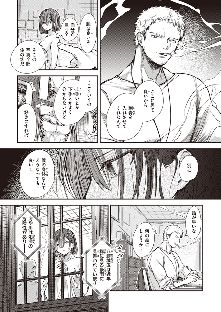 彫師の狼煙(ローエン)は、路地裏で傘も差さずひとり佇んでいる女と出会う。