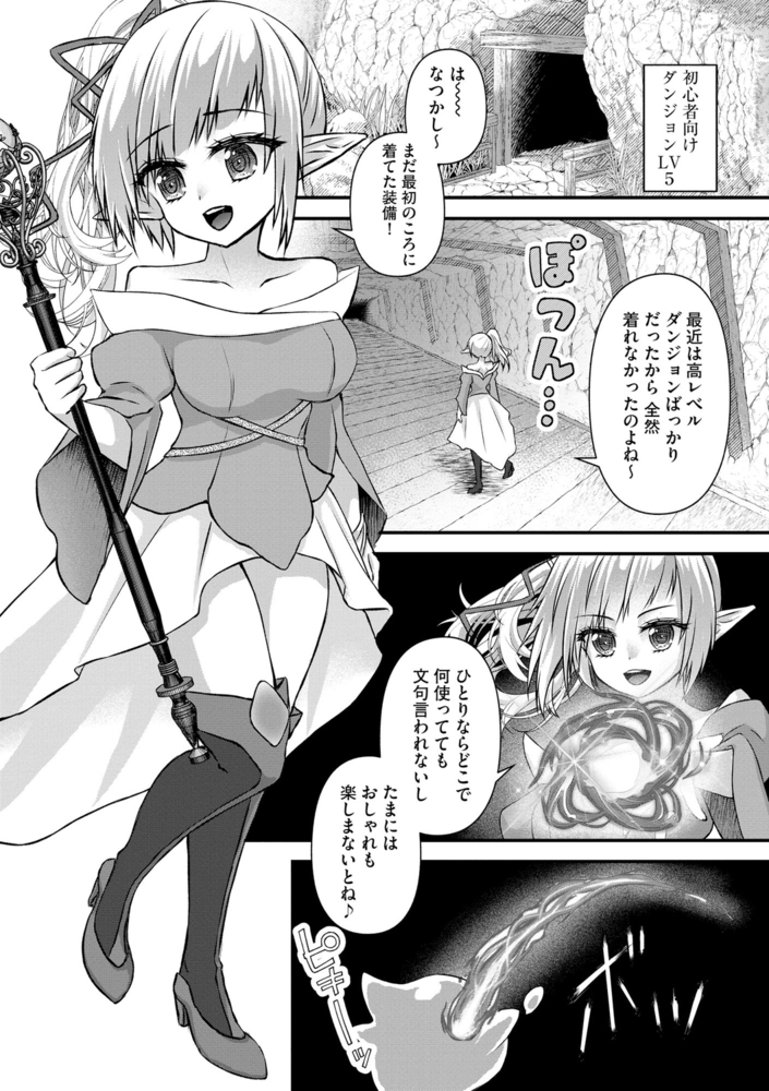 高レベル冒険者の女エルフは、たまの楽しみに能力を気にせず好きな装備を着こんで初心者向けダンジョンに遊びに来ていた。