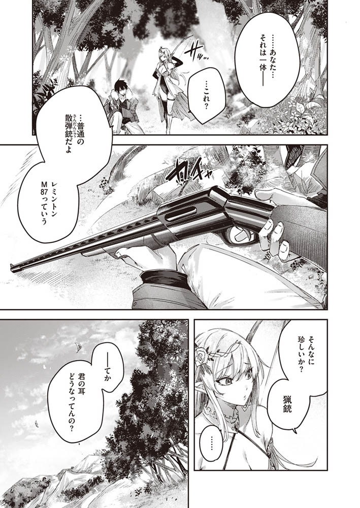 ある早朝のこと、猟師の狩野蓮太郎(かのうれんたろう)は愛銃の散弾銃と共に家を出ると、いつの間にか異世界の森の中へ迷い込んでしまっていた。