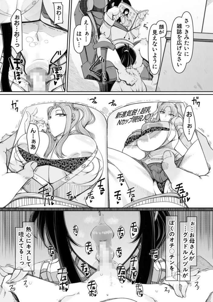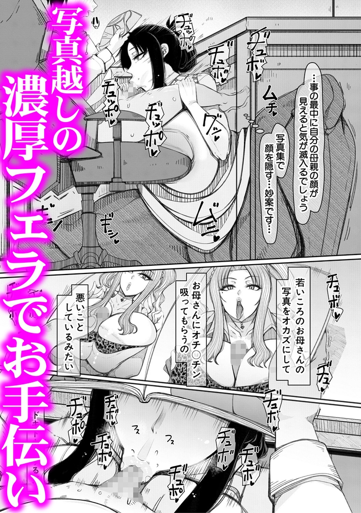 静鶴ママは息子のオナニーの手伝いをするために、グラビアを見せながらドスケベフェラチオでヌいてあげることに。