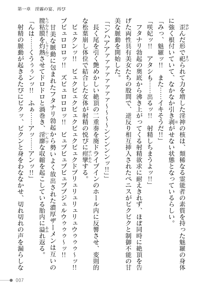 容赦のない口内、アナル、膣への連続射精。咲妃のフタナリと乳首に射精、母乳を封じる呪いをかけて寸止め焦らしプレイ。