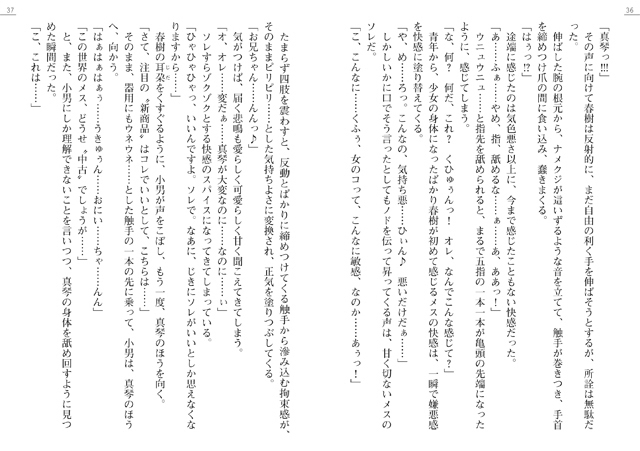 晴樹と真琴は化け物の操る触手に身体を嬲られるが、
