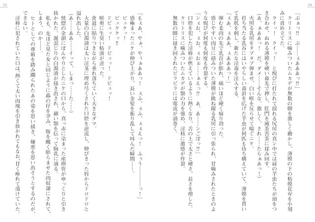 異形の群れに肢体を嬲り尽くされた挙句、彼らの苗床へと堕とされてしまう……。