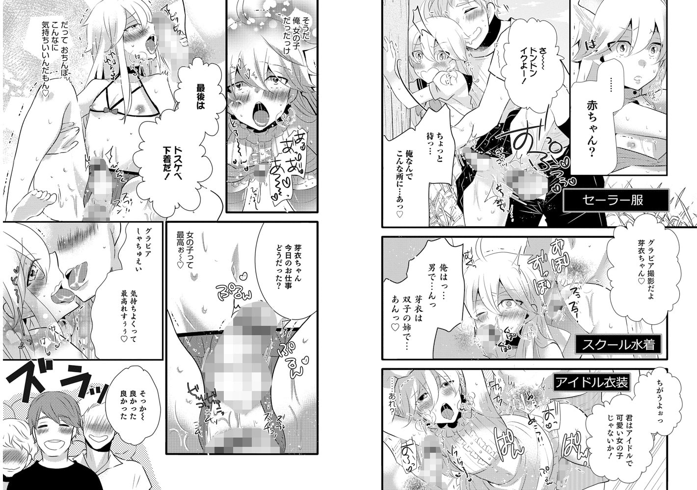双子の芽衣(姉)からグラビア仕事の替え玉を頼まれた渉(弟)。
