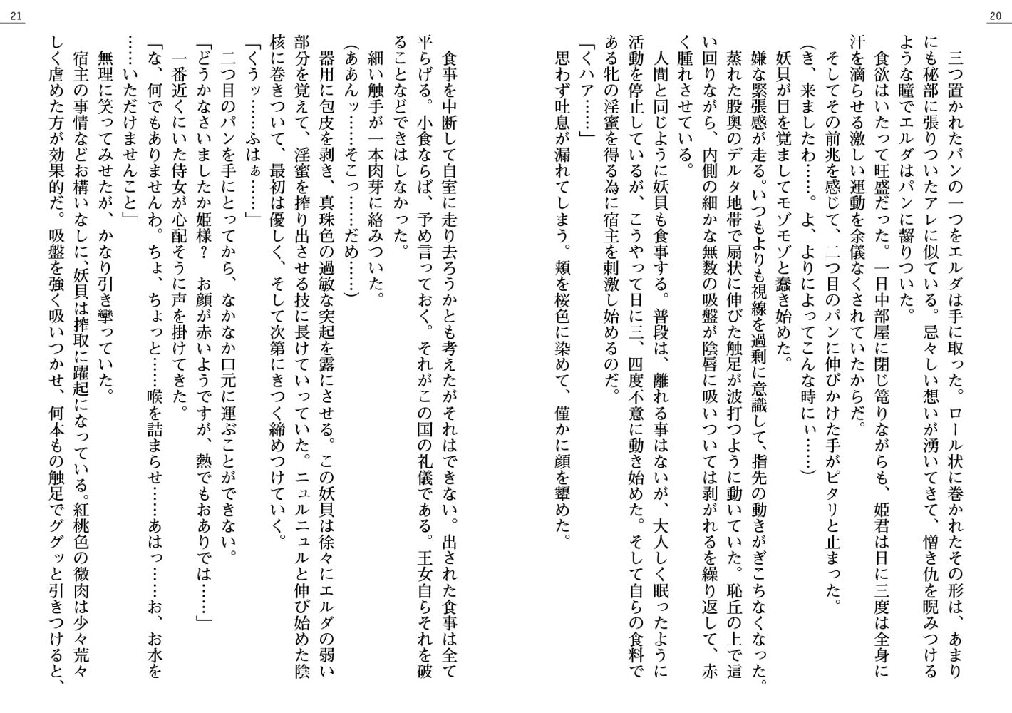 女性の愛液を餌とする人外に身体中を弄ばれた姫騎士はその豊満な肢体を火照らせ、やがて快感へと身を投げ出していく。