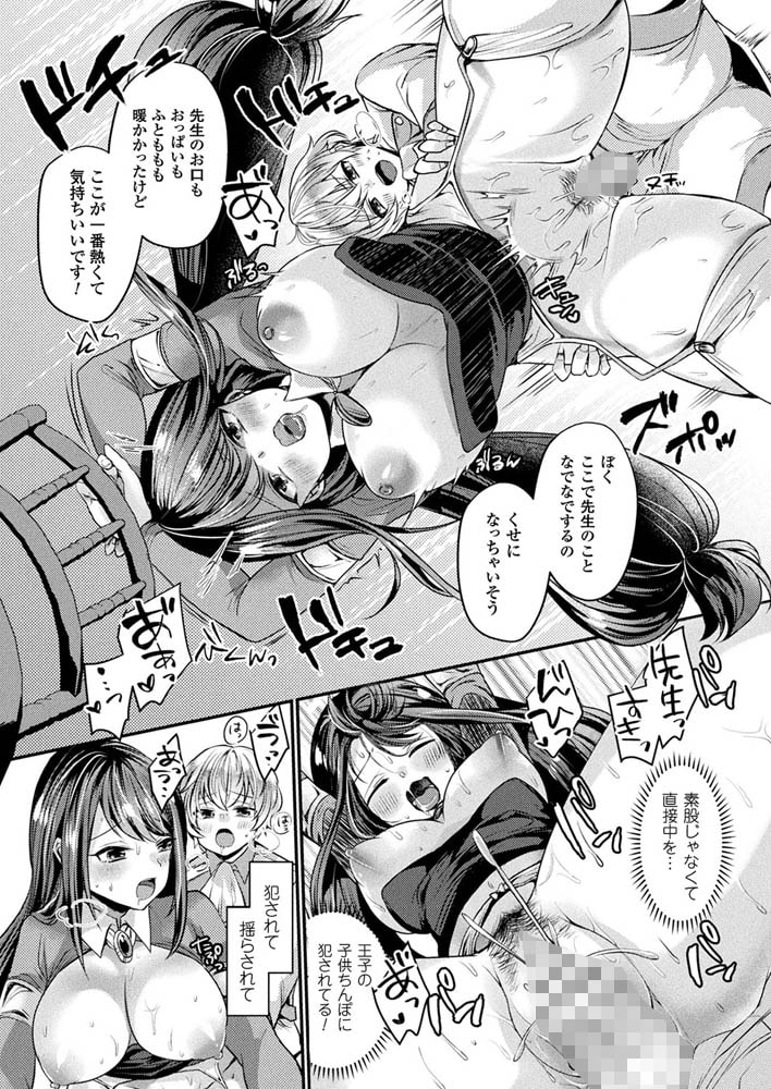 遊び半分で先生に操り魔法をかけ、もっと小さかった頃のように膝上に抱っこをして頭を撫でてもらう王子。生意気盛りでも可愛いままの王子にほっこりする魔女に、今度はおちんちんを撫でるように命令する王子。困惑するも操り魔法には逆らえず、意思に反して可愛い教え子のペニスへ丹念に手コキをしてしまう魔女。さらに、舌を使ってのフェラや母性あふれる巨乳でのパイズリ、むっちりとした太股と股間での素股で王子の精液を勢いよく射精させるがそこで終わることはなく――。