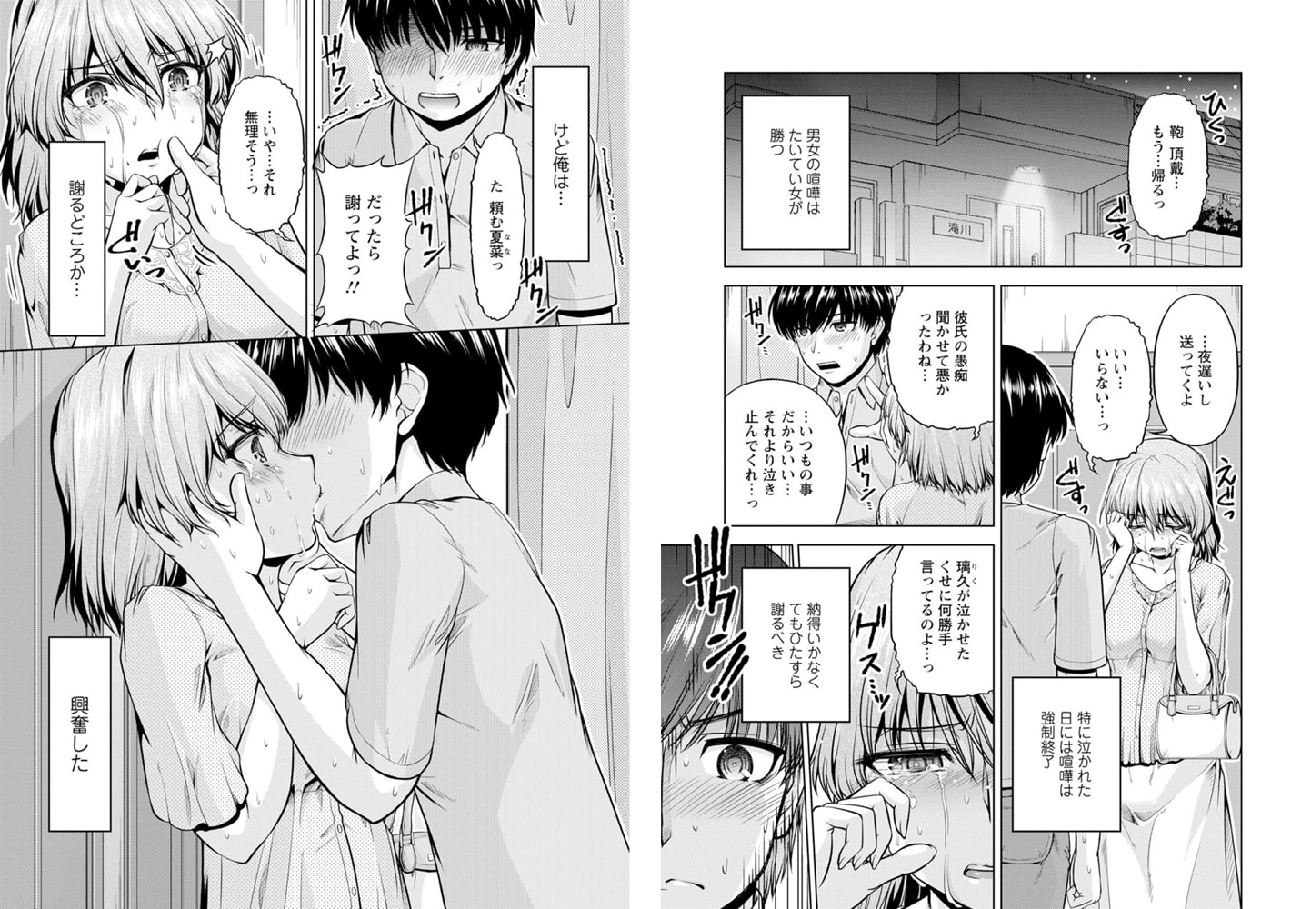 「私…っもうすぐお嫁さんになるんだよっ」同窓会で夏菜と大地の婚約を祝う璃久。夏菜と幼なじみで腐れ縁の璃久は、親友の大地にも秘密の性癖があって…。マリッジブルーな夏菜の愚痴につい言い返してしまった璃久。驚きとともに涙がこぼれてしまう夏菜を見たら…璃久の歯止めがきかなくなってしまう!結婚直前の幼なじみを押し倒し、服を脱がせて下着を剥いで…!!逃げるチャンスはあったのに、感じてしまって璃久にされるがままの夏菜。親友を、婚約者を、お互い裏切りたくないとは思いながらも挿入してしまい…!奥まで挿って激しく動いて声を堪えることも忘れて快楽を貪るッ!!
