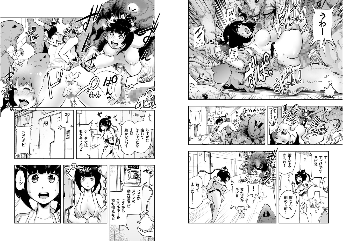エネルギーを求めて動力室へやってきた桃姫を襲うミュータントたち。だが毎日のように野山を駆け回り膣トレに励む桃姫にとってみれば朝飯前のお茶の子さいさい。あっちゅー間に片づけて臨む動力室で見たのは百年前に人類が唯一捕獲人成功した鬼だった! 人類最大の天敵とされる鬼も今や動力源としてエネルギーを供給するパーツの一部と化しているかのように見えたが……。奇才・ゲズンタイトが描くエロチックアドベンチャー巨編、見逃せない第二話。