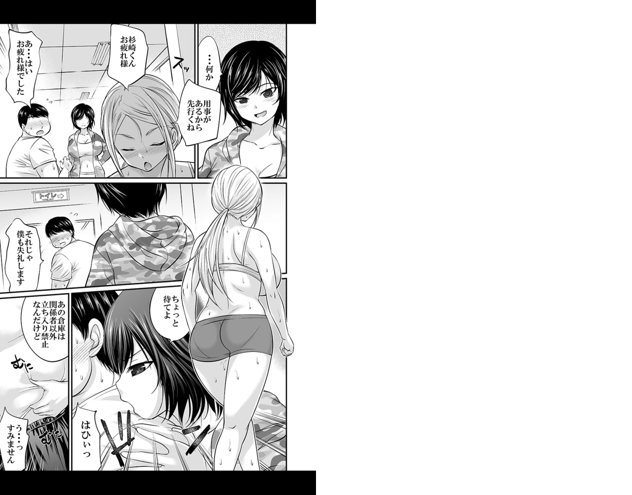 「動け動けおデブちゃん、そんなんじゃカロリー消費できないぞ」ぽっちゃり体系のサラリーマン杉崎は、自分を変えるべく意を決してスポーツジムを見学しに行くことに。はじめは尻込みしていたが、美人なインストラクター沙良のナイスバディにすっかり見惚れてしまう。そして──「杉崎さん、服を脱いでもらってイイかな?」体型チェックのはずが、沙良の手は杉崎の股間に伸びて…!?突然始まったヒミツの運動に戸惑いながらも、沙良の指示に従って腰を動かす杉崎。そして沙良を探していたもう一人のインストラクターが……。