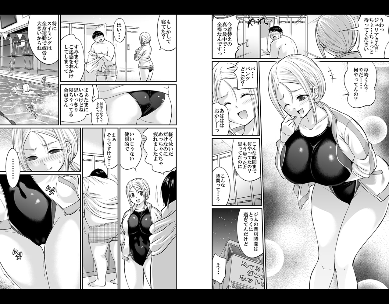 「動け動けおデブちゃん、そんなんじゃカロリー消費できないぞ」ぽっちゃり体系のサラリーマン杉崎は、自分を変えるべく意を決してスポーツジムを見学しに行くことに。はじめは尻込みしていたが、美人なインストラクター沙良のナイスバディにすっかり見惚れてしまう。そして──「杉崎さん、服を脱いでもらってイイかな?」体型チェックのはずが、沙良の手は杉崎の股間に伸びて…!?突然始まったヒミツの運動に戸惑いながらも、沙良の指示に従って腰を動かす杉崎。そして沙良を探していたもう一人のインストラクターが……。