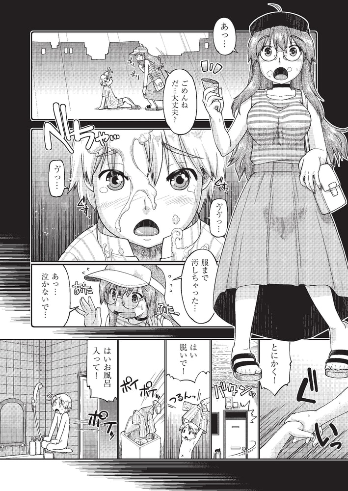 ぼーっと街を歩いていた時にぶつかって転ばせてしまったカワイイ男の子の服を汚してしまい泣かれてしまったのでとっさに自分の家に連れ帰りお風呂にいれる。