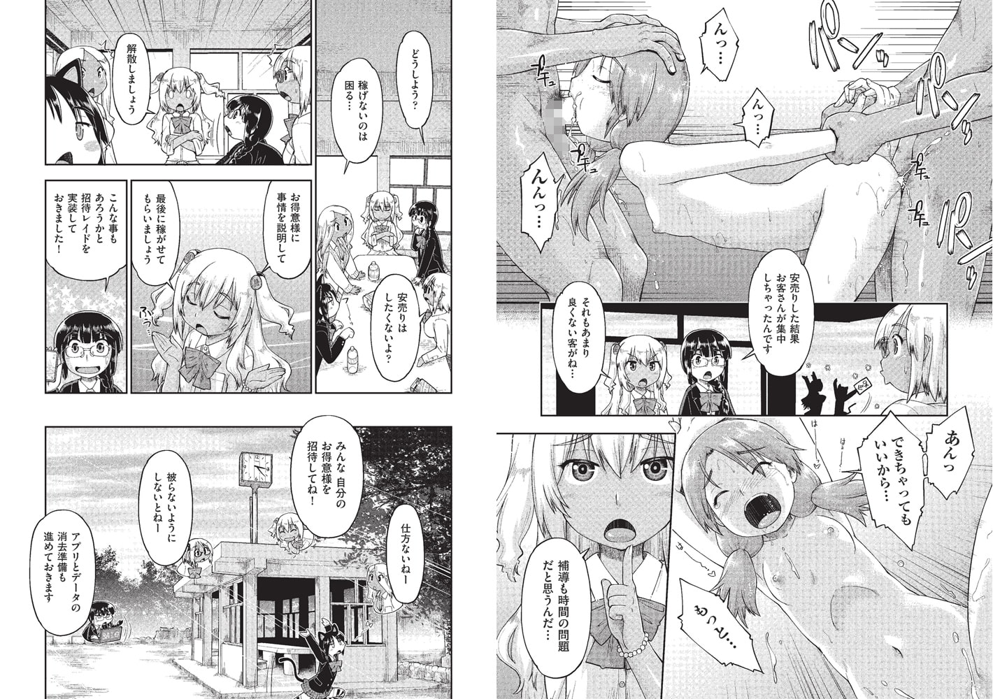 援交メンバーのうち一人が安売りして好き勝手やってしまいお客さんが集中しすぎて、その結果客層も悪くなり、補導も時間の問題という話し合いの結果解散することに。解散前にそれぞれお得意様を招待して最後の稼ぎと最後のサービスをすることに。連絡先を聞いてくる客も多いがキッパリ断って、最後の濃厚s-ビス!!