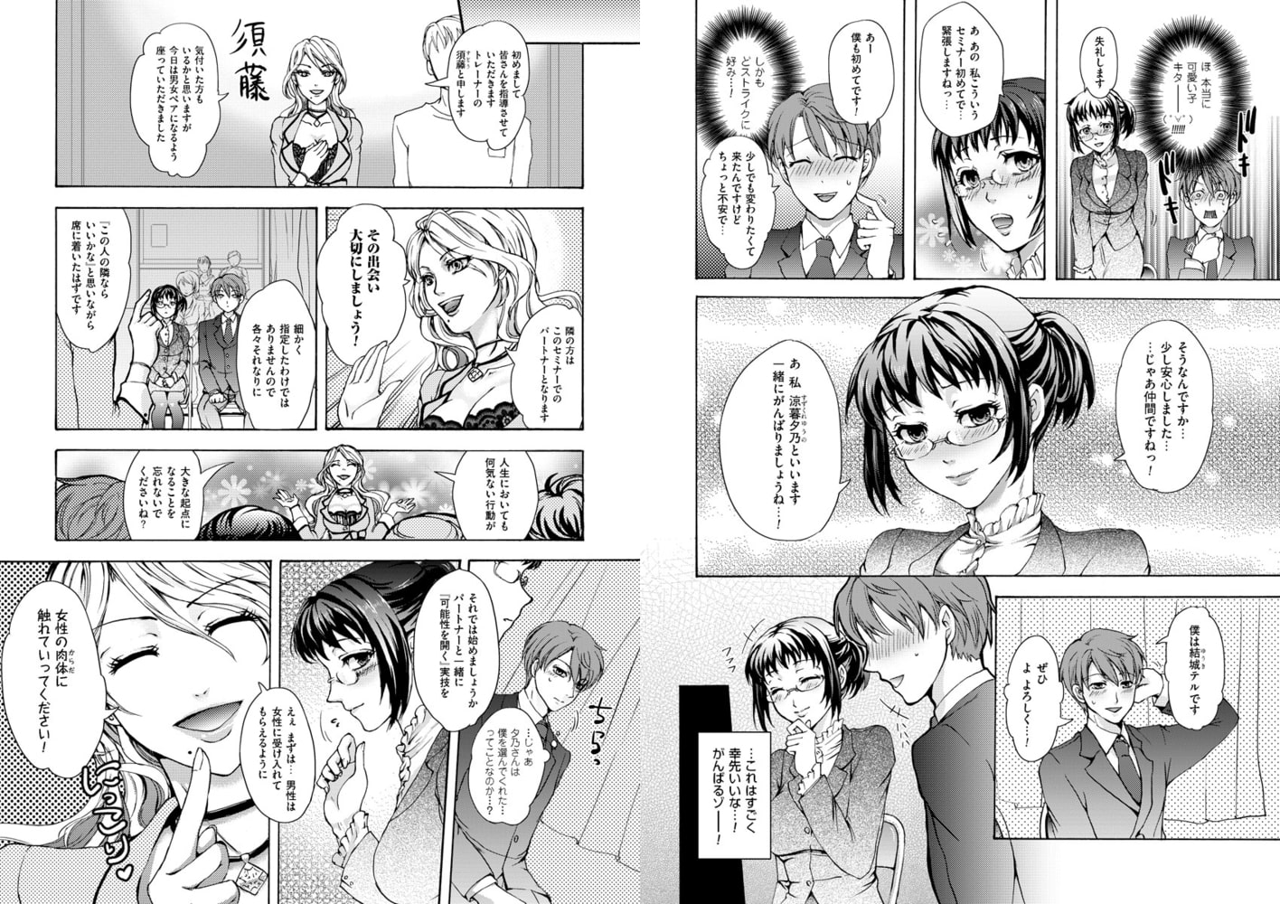 仕事も私生活もちっとも上手くいかない…そんなダメ新入社員の俺、結城テル。知人の強い薦めもあり参加した自己啓発セミナーで出された課題は、隣に座った可愛い女性、涼暮夕乃さんを相手に、お触り、公開セックス、ご奉仕フ●ラ催促、野外プレイ、乱交ゲームなどなど、トレーナーの指示のもと、自己の殻を打ち破るための、アノ手コノ手の猥褻&淫靡な強○セックス・イニシエーション(通過儀礼)!! これはトレーナーの指示なんだ……ヤらないといけないんだ…!!お互いに……!変われるチャンスなんだ…!!! 「きゃあっ…!?んっ…!だ、だめえ!触れちゃっ…ーっ!!! はっ、はんっ…!いやっ…こんなのっ…彼氏にもしてっ…もらったことなっんんんっ!!!」―――