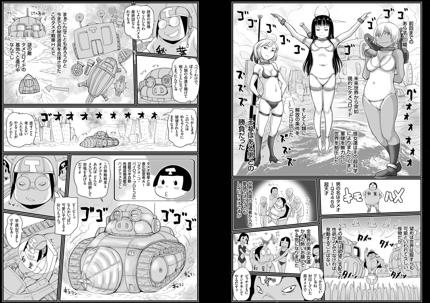 突如として人類に宣戦布告をしてきた美少女型アンドロイド軍団。その圧倒的な軍事力を前に人類軍は無力化され支配されてしまうと思われたが、人類側に出された条件はただ一つ。これまで散々おバカでスケベなことを繰り返してきた愛すべきIQ246のキモオタ天才・タメオとの勝負であった。『世界を救うでしゅか~~!? ハ~面倒臭いでしゅが美少女の頼みならば仕方ないでしゅね~』タメオは世界を、全人類を救えるのか!? 壮絶なファイナルエロ・バトルが始まる……!!!