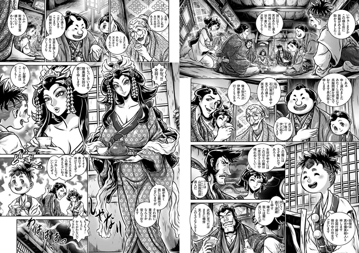 ひどい霧に先が見えなくなってしまった修行僧の真樹人は、偶然見つけた旅籠へと避難。旅籠の中では何人かの先客がおり、退屈しのぎに「百物語」を始めることに。まず語るのは呉服問屋を営む長兵衛。旅籠に飾られた掛け軸に「雪女」が描かれているのを見つけ、実は雪女には後日談があったと話し始める…