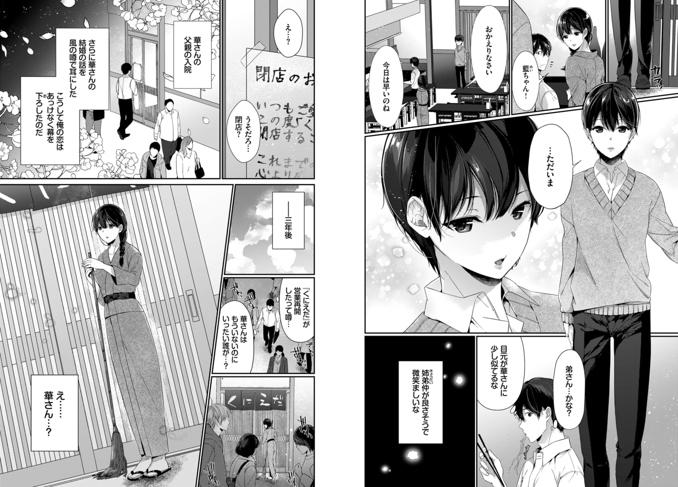 行きつけの蕎麦屋『くにえだ』の看板娘・華に想いを寄せていた主人公。一生懸命働く華と、その弟・藍は非常に仲睦まじく、いつも微笑ましく眺めていた。しかし、そんな幸せな日常は突然幕を閉じるのだった。華の父が入院し閉店、さらに華は結婚したとの風の噂を耳にしてしまう。それから三年後──。『くにえだ』が営業再開したとの噂を聞いた主人公は、早速お店へと向かうことに。そこで目に飛び込んで来たのは、店を切り盛りする華の姿で…。いつも見ていた風景、あの頃と変わらない匂い…本当の想いアナタに伝えたい…! 三年間の時を越え、新たな愛が今生まれる!