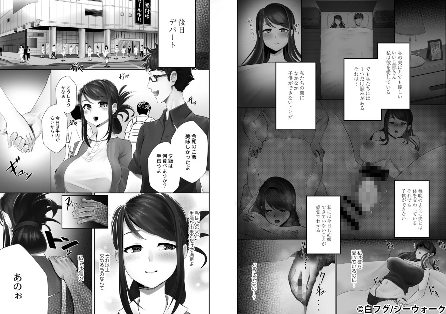 愛する夫との間に子どもができないことが悩みの果穂。夫と買い物中、久しぶりに会った元彼に声をかけられる。夫が仕事の電話で離れた隙にトイレに連れ込まれ、エッチなことをさせられてしまう。その最中、いなくなった果穂を心配した夫からの電話が。元彼を制止して慌てて出たものの、そのまま夫のより大きいち〇ぽを挿れられてしまい…。通話しながらのエッチに必死に声をこらえる果穂。懐かしいのキてるぅ…私の弱いところばっかりっ!このまま中出しされたら子どもができちゃう…!?
