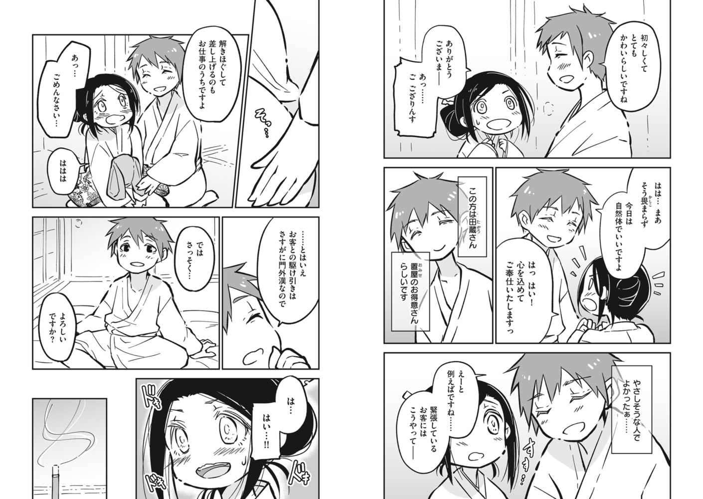 ボクはオトコだけど置屋で遊女になるために育てられました…今日は初見世…この置屋のお得意さん田蔵さんからお仕事のイロハを教わります。緊張してるボクを田蔵さんはやさしく解きほぐしてくれる優しいお方。そんな田蔵さんに精一杯ご奉仕して差し上げたくて…
