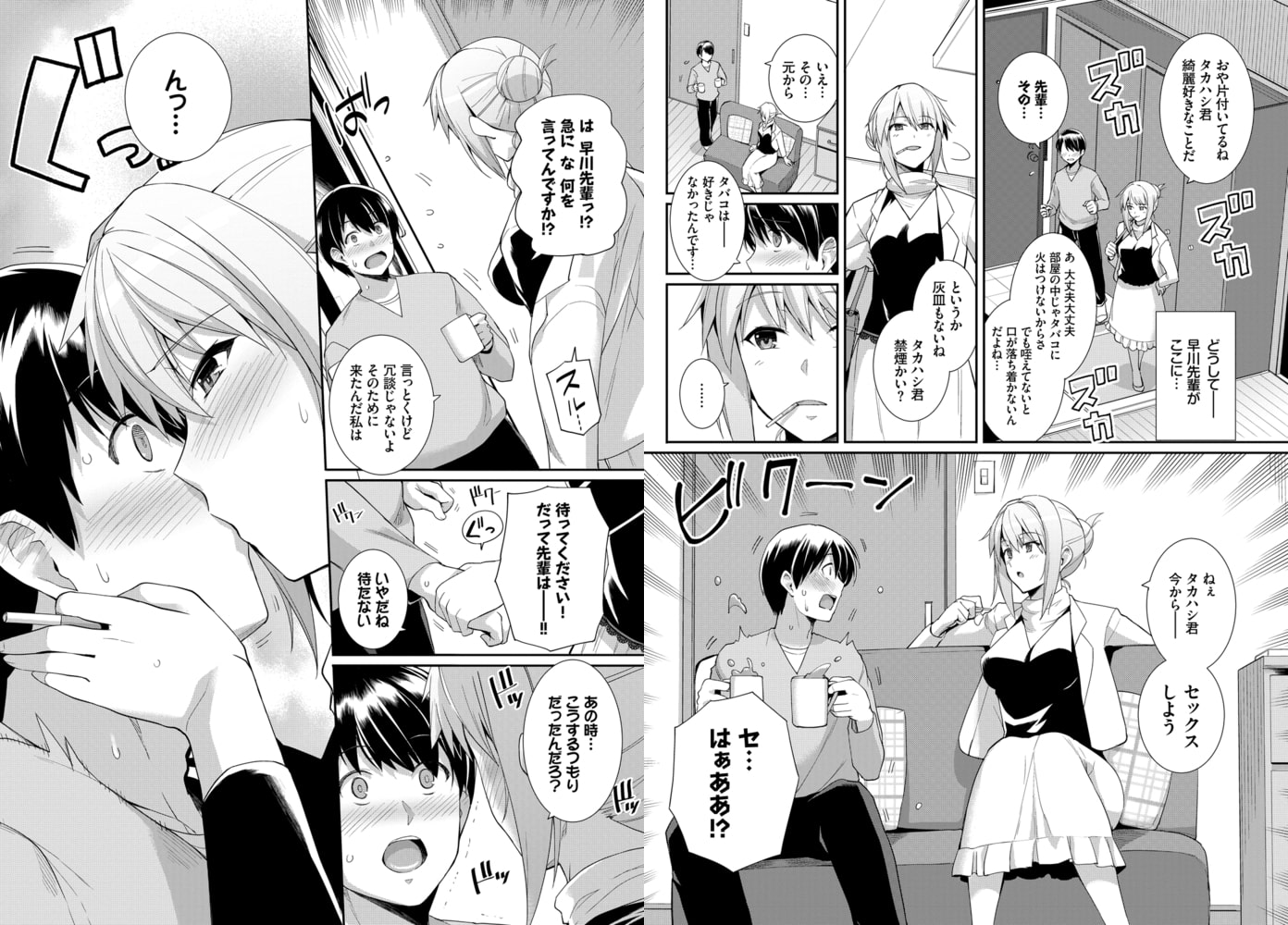 大学生の主人公は、サークルの早川先輩に一目惚れしてからというもの、吸えないタバコを握りしめ毎日先輩のいる喫煙スペースに通っていた。そこで話掛けられるたび、先輩のことを想う気持ちは日に日に大きくなっていった。そんなある日、主人公は先輩に自分の気持ちをぶつけてみるのだが、告白はあえなく失敗。タバコもサークルも辞め、先輩に会わないようになりふり構わず逃げ出してしまうのだった。しかし数日後、自宅に早川先輩が突然やって来て…。キミがいなくてぽっかり空いた胸の穴、その身体で埋めて♪ 純愛キング・はるきちが描く、ドキドキラブエロス!