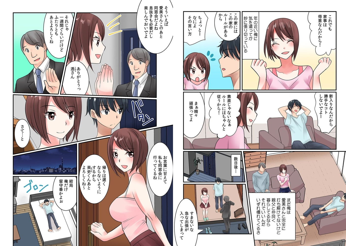 「ここビチョビチョだよ…またイっちゃうんじゃない?」――父の再婚相手である愛美さんは、若くて美人でスタイルも良く、思春期の俺にとって少し刺激が強い。父が出張で不在のなか愛美さんが酔っぱらって帰宅して、無防備に下着姿のまま寝るものだから・・・ちょっと胸だけ触るつもりだったのに、どんどんエスカレートして服を剥ぎ、ナカを舐めまわすと蜜がト○リ…ビクビクと絶頂したところで愛美さんが起きてしまい…――「新しい家族とはこうやって仲良くなるのがウチのルールだよ」言葉では抵抗する愛実さんも、あまりの気持ち良さに体の力が抜け…「ほしいんでしょ?オレのチ●コ!愛美さんのオマ●コはそう言ってる!!」