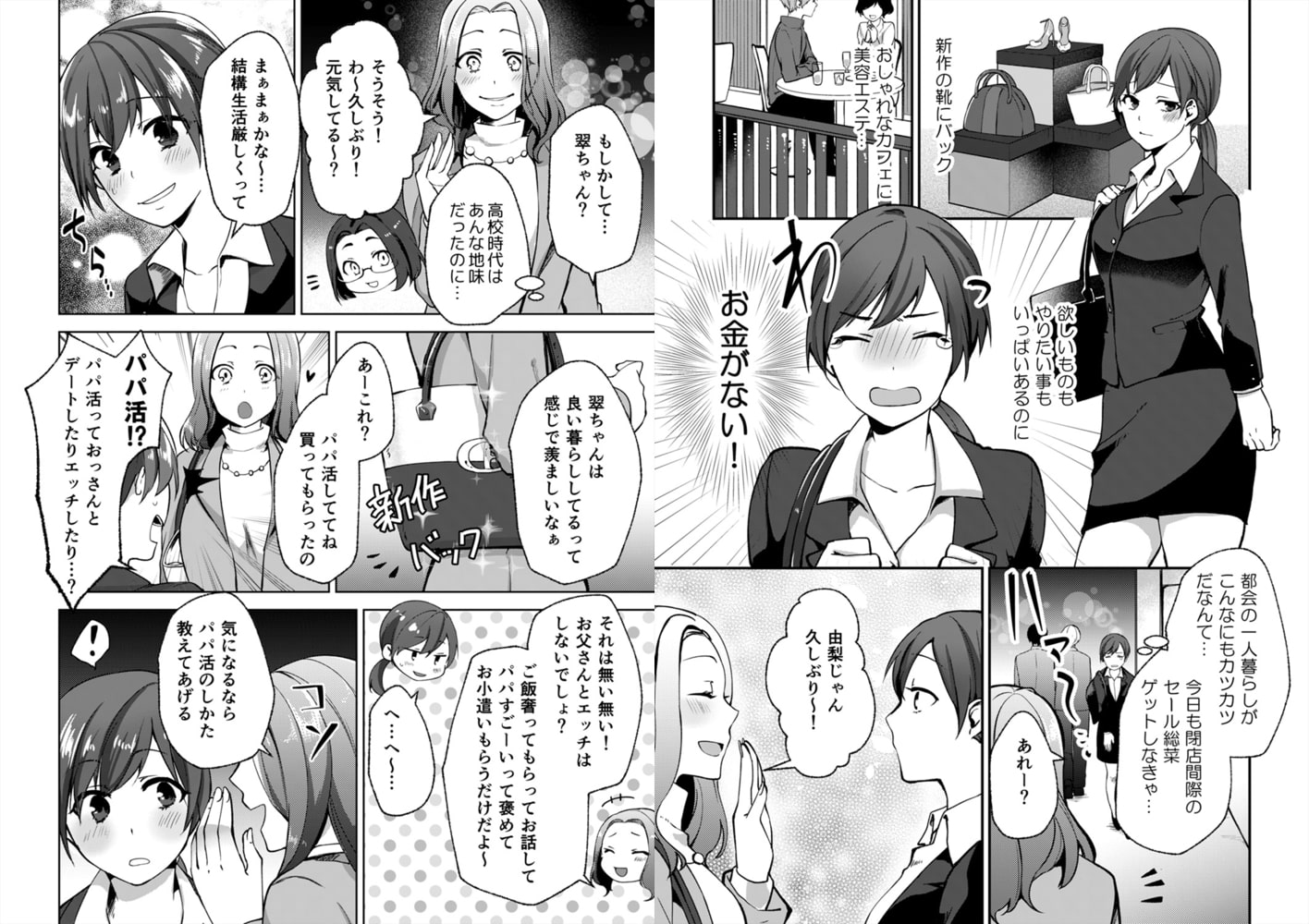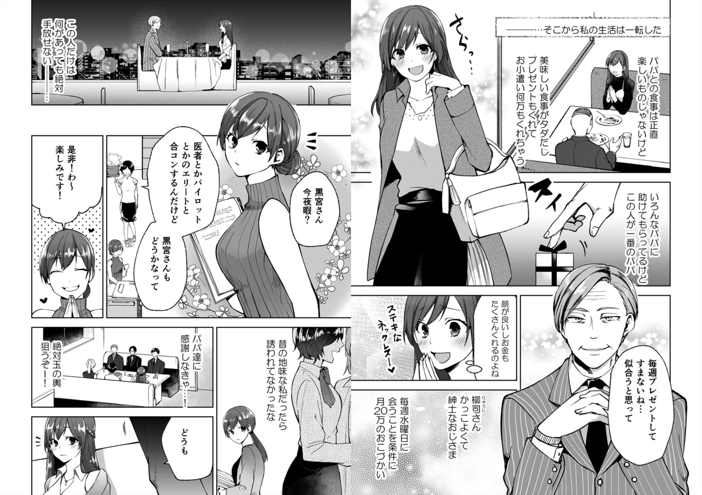 「こんなにすんなり挿入るなんてヤラシイ娘だね」イッたばかりなのに連続で与えられる快感。嫌なハズなのに気持ちよすぎて―…!お金欲しさのあまりパパ活を始めた由梨。簡単に稼げてラッキーなんて調子に乗っていたが、ある日ついに肉体関係を求められてしまう。オジサンと寝るなんて絶対無理だし、彼氏にバレる前にパパ活なんてやめよう…そう決心した矢先、彼氏の父親がパパ活の相手だということが判明。息子に黙っておく代わりにと脅されてしまう。敏感なク○をねっとり舐め回しながら奥をかき混ぜられたら、感じたくないのに声が漏れて…。そしてついに硬いアレが入口を押し広げてきて…ダメ、近くに彼氏がいるのにお父さんとSEXするなんて!