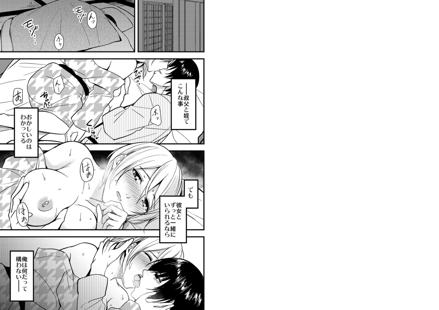 叔父と姪でこんな関係…絶対ダメなのに…。私の感じる部分を知り尽くした指先や舌に何度も何度もイカされて…――三歳年下の叔父…恭一が私に対して家族以上の好意を寄せている事は気づいていた。彼の気持ちには応えられない…。だから、結婚を決めたのに…。結婚を決めたと報告したその日の夜…寝室にやってきた叔父は、寝たふりを続ける私の下着のナカに手を入れ…。ぐちゅぐちゅと音がなるまでねっとりと弄られ簡単にイカされてしまっても、寝たふりを続ける私に彼は…。「寝たふりを続けるなら最後までする」と言い、そのまま私のナカに…。そして…その日から、結婚式の日まで…三歳年下の叔父に毎晩抱かれる夜がはじまった…。