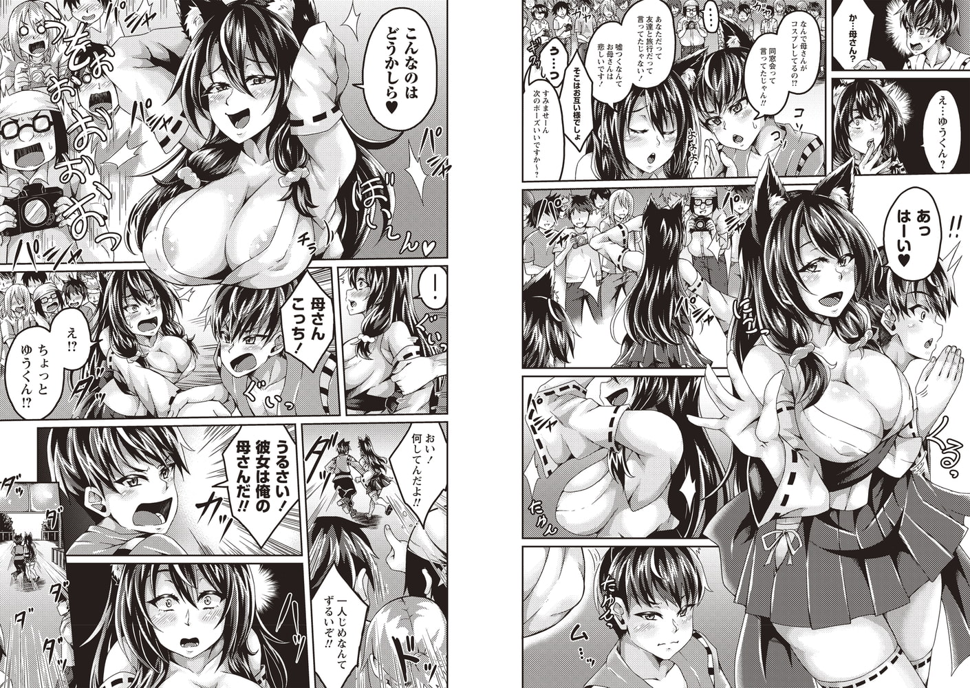 【本誌初登場】コスプレ広場にカメラ持参でやってきた祐介は、フラッシュ先にコスプレした我が母を発見。目が合い戸惑う二人だが、カメコたちの催促に、思わずポーズを決める母に業を煮やした祐介は、彼女の手を引きホテルへとなだれ込むと……。